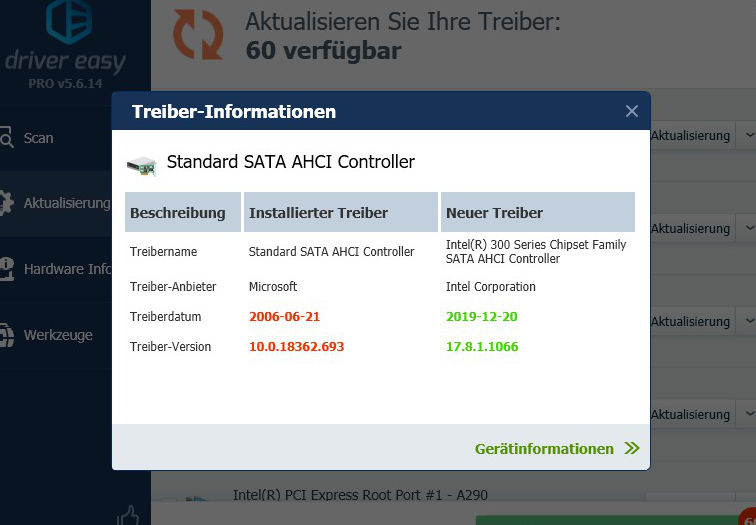 69 veraltete oder fehlende Treiber wurden gefunden.